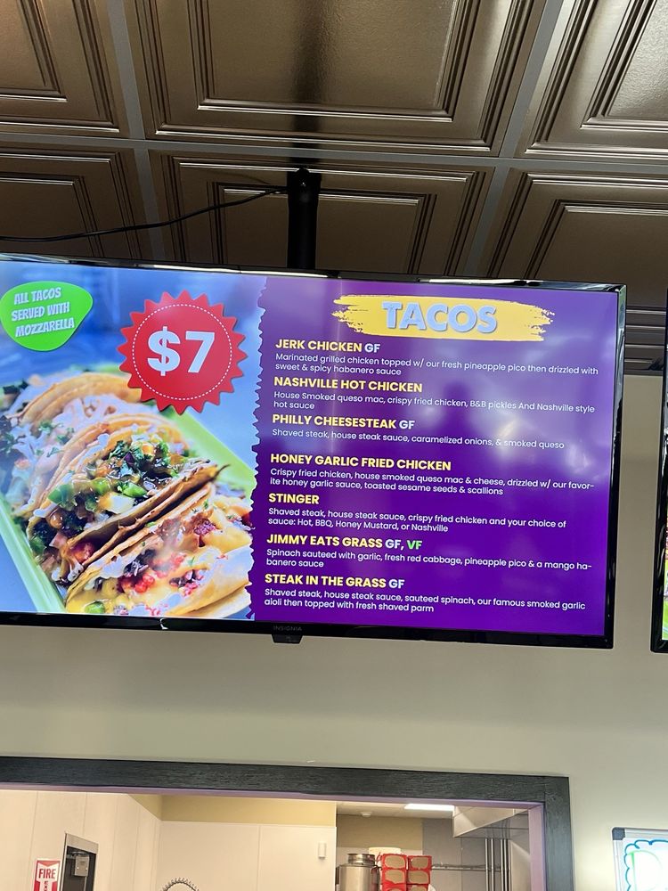 The menu features a wide variety of tacos, with standout options like the jerk chicken and honey garlic chicken. The birria tacos are also a crowd favorite, although they pack a spicy kick for those who are sensitive to heat. The packed birria taco receives high praise for its flavorful meat and cilantro, paired perfectly with the consume sauce.